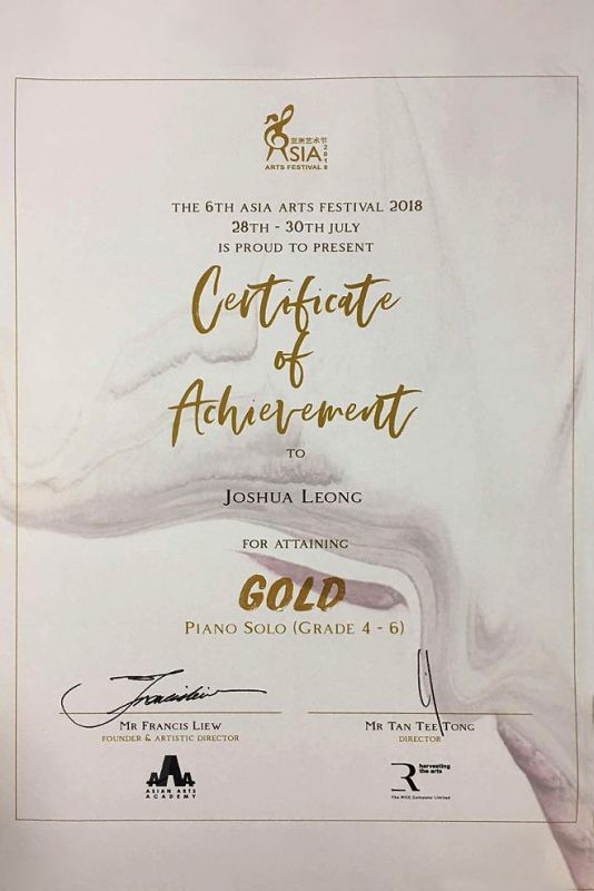 Gold Award – Raffles International Piano Competition 2017 Viva School of Music & Ballet proudly